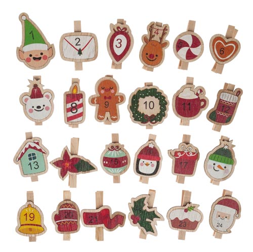 Facsipeszes adventi kalendárium, 24 részes, kb.60 x 10 x 45 mm, natúr/ színes