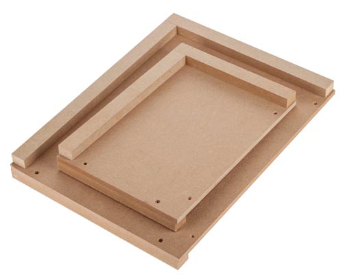 A nyomtató munkákhoz egy biztonságos munka alátét eszköz.A linol lapot a keretben a szegélyhez kell fektetni. A fa peremet egyszerűen le lehet csavarozni és a lapon talált előfúrt lyukakba átcsavarozni, így jobb és balkezeseknek egyaránt alkalmazható.