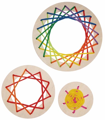 Fa fűző gyűrűkeret és korong, natúr, 9 részes