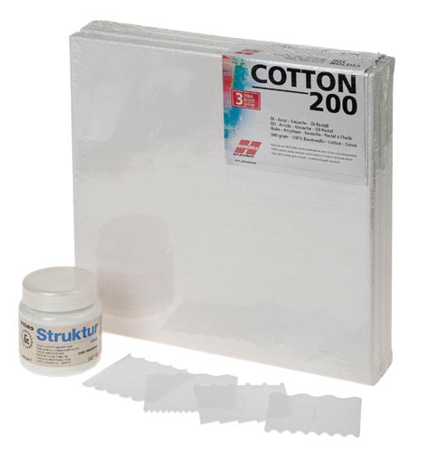 Minimalista vászonkeret képek fehérben. Elkészítésükhöz struktúrpasztára és különböző mintákat húzó spaklira van csak szükség. Tartozékok: 3 db feszített vászonkeret kb.30 x 30 cm, 250 ml fehér struktúrpaszta, 4 db mintahúzó spakli.