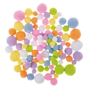 Pomponok - pasztell, színes, kb ø 15 - 35 mm, 100 db