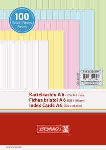 BRUNNEN vonalas kártyalap, DIN A6, színes, 100 db