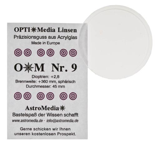 Műanyag lencse 45 mm, gyújtópont 360 mm