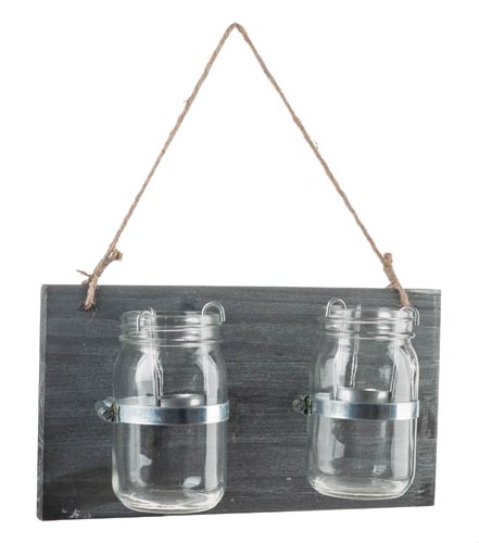 Fa falidísz - üvegekkel, kb. 300 x 95 x 160 mm, 1 db, barna/szürke koptatott