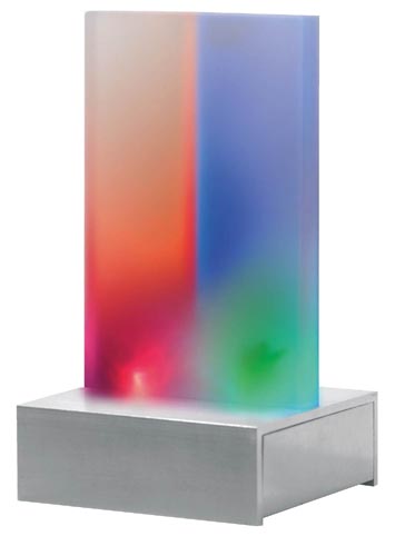 A fénydiódák egyik legújabb változata működteti ezt a szivárvány minden színében pompázó különlegességet. A LED 3 alapszínben létezik (piros, sárga, kék) és ezekből keveredik össze az összes többi színárnyalat. Az újdonság, hogy az elektronika a fénydiódákba épül bele, így az összeépítést is leegyszerűsíti. Az elektronika különböző sebességgel keveri a színeket és így újabb és újabb árnyalatok képződnek. 2 egymás mellett elhelyezkedő fénydióda kombinációja felerősíti a színhatást. A recés felületű acryl üveg szintén erősíti a színhatást. Ha az acryl üveg csak az egyik oldalon recés, akkor 3D hatás keletkezik. Az elektromos részek forrasztás nélkül összeépíthetők. Az acryl üveg különböző méretben, alakban ízlés szerint alakítható, az összeállítási útmutató több modell leírását is tartalmazza. Ezt a terméket gyakorlatlan kezek is gyorsan össze tudják építeni. Az acryl üveg 100 mm magas. Tartozékok: - 2 db Rainbow-Led - acryl üveg - alumínium foglalat, 9 v-os elem nélkül
