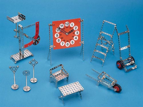 154 részes - építhető modellek: közlekedésitábla, asztal, szék, mérleg, létra, óra, talicska - Construction fém építő csomagok 8 éves kortól