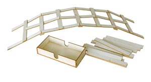 Ezzel a kiváló minőségű fakészlettel íves hidat építhet Leonardo da Vinci szellemében. És mindezt fixálószerek nélkül! Az elkészült híd teljes hossza meghaladja az 1 métert, és a gondos építés után meglepően stabil. A hídra felülről kifejtett erő eloszlik a híd minden építőelemére. Ezenkívül a felülről érkező nyomás valóban növeli az általános stabilitást. A híd építés után könnyen szétszedhető, az egyes részek pedig a tárolódobozban kerülnek tárolásra. A dobozt előre össze kell szerelni - a doboz néhány ragasztóval és kis hozzáértéssel néhány perc alatt összeragasztható. A szállítás faragasztót tartalmaz. Kötelező munka: ragasztás és összeszerelés. A hídat több mint 40 részből lehet összeállítani.