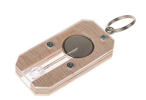 Egy prasktikus LED zseblámpa kulcstartóként, a műKödéshez szükséges 3V (CR2032) gombelem a csomagban található. Az elkészítéshez szükséges munkafolyamatok: bejelölés, fúrás, fűrészelés, csiszolás, ragasztás és összeépítés. Leírás német nyelven.