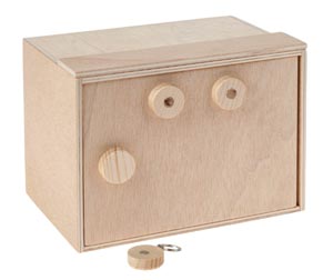 A trezór egy raffinált, titkos mechanizmussal működik, melynek alapja 2 db neodym mágnes. Az elkészítéshez szükséges munkafolyamatok: bejelölés, fúrás, fűrészelés, csiszolás, hajlítás és összeépítés. Leírás német nyelven.