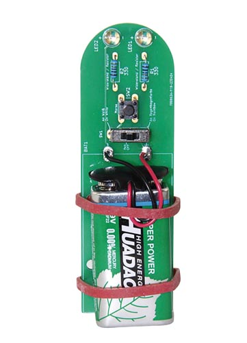 Kifejezetten kezdő forrasztó munkához tervezett zseblámpás forrasztótábla. Extra nagy forrasztóérintkezőkkel, amelyek megkönnyítik az első lépések megtételét a táblaforrasztás világában. Az utasítások szerint minden alkatrészt egymás után forrasztanak. Minden egyes lépés részletesen, sok szöveg nélkül lesz bemutatva, így különösen a fiatalabb diákok gond nélkül tanulhatnak forrasztást. Az összeszerelés befejezése után egy menő, morze-kóddal ellátott zseblámpa készült. 9V elemmel Méretek: kb. 57 x 40 x 10 mm.