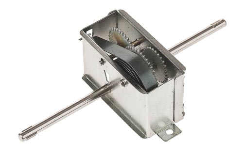 Hajtómotor visszahúzó rugómaghajtással. Fém fogaskerekes, meghajtótengely 4 mm x 110 mm, motorház mérete 60,5 x 23 x 30 mm, ideálisan beépíthető 25 cm-nél nem hosszabb járművekne.