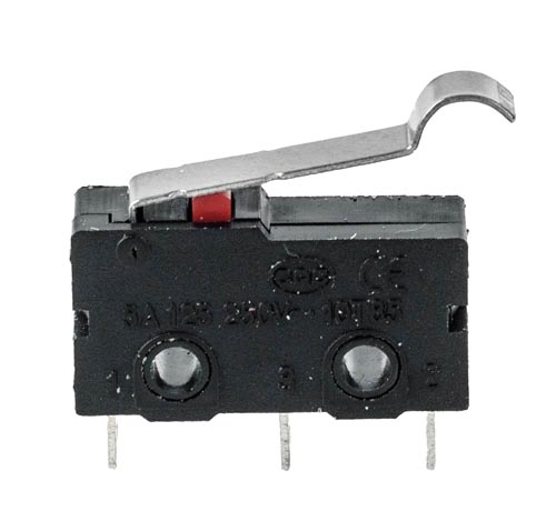 max. 250 V - 5 A, kapcsolóerö: 50 g, visszaállító erö: 6 g, az emelökar útja: 4 mm. 19,5 x 6 x 10 mm
