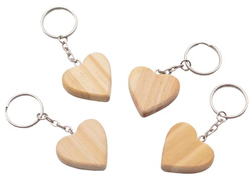 Fából készült kulcstartó - szív, kb 35 x 10 x 35 mm, kb. 80 mm hosszúak, 12 db