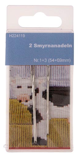 Smyr tűk varrási és hímzési munkákra alkalmasak. Szőnyegszövésben is használják. A lekerekített hegynek köszönhetően nem keletkezik sérülés a hímzés és a varrás során. Tartalma: 2 db tű (1. és 3. sz.), méretek: 70 x 2 mm (tűszem 16 mm), 50 x 1,7 mm (tűszem 6 mm), 2 db-os készlet