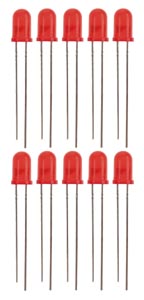Fénydiódák (LED) 5 mm, piros, 10 db
