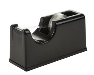 Csúszásálló, biztos fekvés, melyet a súlyának és a gumírozott talpnak köszönhet. Kb.150 x 60 x 75 mm, ø 50 x 20 mm méretű ragasztószalag tekercsek illeszthetők a tartóba.