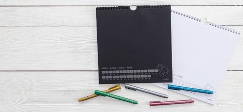 12 db fehér hónaplap és 1 borítólap, spirálkötéssel, 220 g/m², üres felület kb. 23 x 18,5 cm