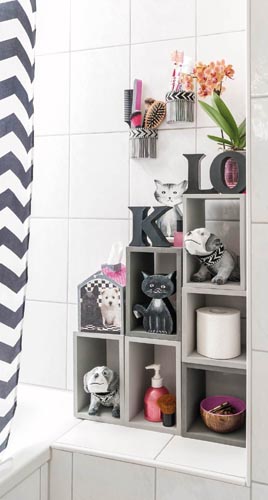 Fa falidísz - üvegekkel, kb. 300 x 95 x 160 mm, 1 db, barna/szürke koptatott