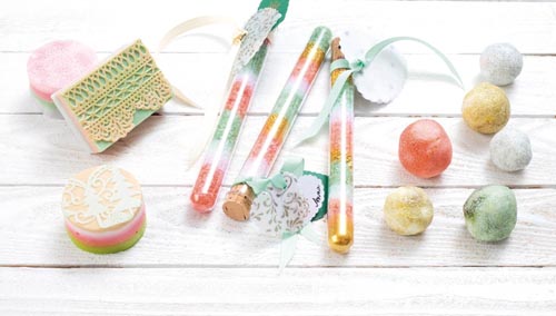 Az apró szemcsékből egy különleges szappan gyurma keverhető, melyet szappanszínezővel be lehet festeni és szaggató formákkal ki lehet szaggatni. Szappanöntésre is alkalmas. .