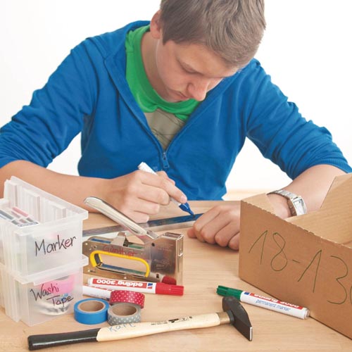 fekete, piros, kék, zöld, víz és dörzsálló, szagtalan, a legtöbb felületre alkalmazható, a tinta utántölthető