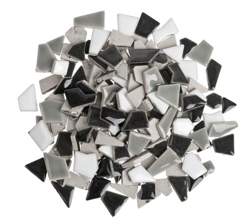 Mozaik cserépdarabok - mini, 200 g, fehér/fekete mix