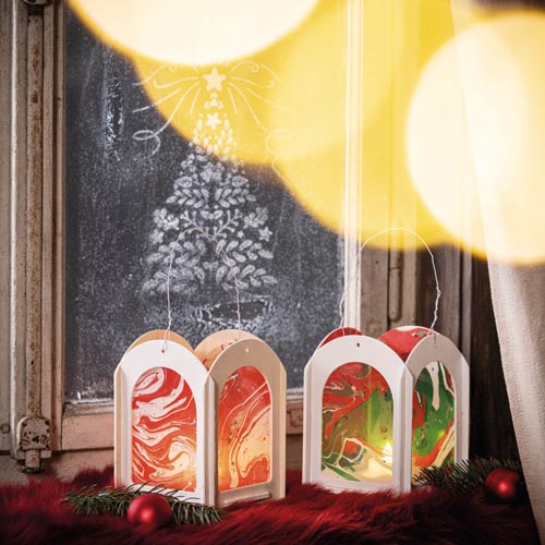 összeillesztésre váró részek, az elkészült lámpás kb. 120 x 120 x 160 mm, natúr, dekoráció nélkül, 7 részes
