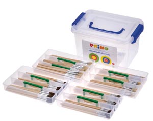 24 db kerek 1 - es, 18 db kerek ecset 2 - es, 18 db kere ecset 4 - es, 12 db kerek ecset 6 - os, 12 db kerek ecset 8 - as, 12 db kerek ecset 10 - es, 24 db lapos ecset 2 - es, 18 db lapos ecset 4 - es, 18 db lapos ecset 6 - os, 12 db lapos ecset 8 - as, 12 db lapos ecset 10 - es, 12 db lapos ecset 12 - es méretben. Praktikus tetős műanyag tartóban.