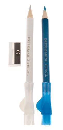 2 db textil felületekre használatos szabó kréta kis kefével és egy hegyező.