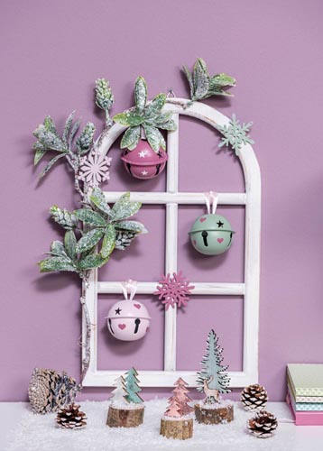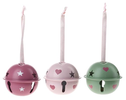 Fém csengettyű, kb. ø 65 mm, mentazöld/rózsaszín/rózsapiros , 3 db