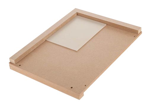 A nyomtató munkákhoz egy biztonságos munka alátét eszköz.A linol lapot a keretben a szegélyhez kell fektetni. A fa peremet egyszerűen le lehet csavarozni és a lapon talált előfúrt lyukakba átcsavarozni, így jobb és balkezeseknek egyaránt alkalmazható.