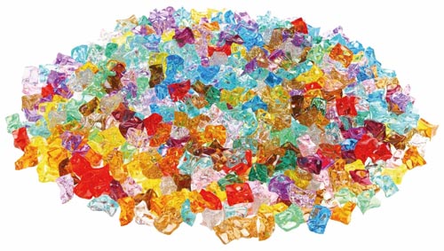 Áttetsző acrylüvegbőL készült kövek. A négy szín a földet, a vízet, a tűzet és a levegőt szimbólizálja. Kíváló kellék a számolás tanulásához, szortírozás közben fejleszti a finommototrikát és a színek ismeretét. 3 éves kortól ajánlott. A kövek mérete kb.25 x 18 x 20 mm, 500 db, tároló zsákban.