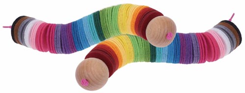 Tetszés szerinti sorrendben vagy a színskálának megfelelően lehet a barkácsfilc korongokat felfűzni. Közben fejlődik a gyerekek finommotorikája, logikája és ismereteik a színek világában. 3 éves kortól ajánlott. A csomag tartalmából 2 db filckukac készíthető.