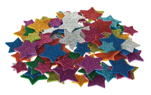 Glitteres dekorgumi - csillagok, kb. 20 x 20 mm, 30 x 30 mm, 100 db