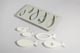 1 forma 5 mintával, kb. 26 - 46 mm. Anyagszükséglet: 450 g kreativ beton, 270 g ékszerbeton, 370 g raysin, 270 g gipszpor, 230 g resin, 250 g szappan.