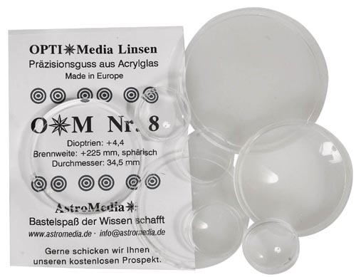 Műanyag lencse 34, 5 mm, gyújtópont 225 mm