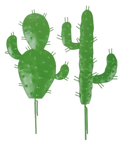 Fém leszúrható kaktusz, kb. 120 x 15 x 190 - 200 mm, zöld, 2 db