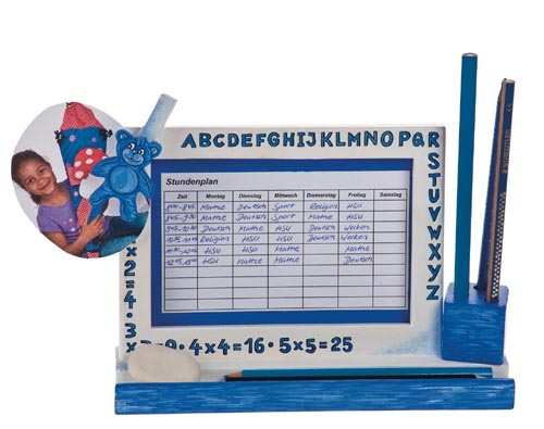 Asztali órarend és írószertartó. A papír órarendet oldalról lehet a keretböl eltávolítani. A csomag egy érdekes technikai foglalatosság és a végén egy praktikus használati és dekorációs tárgy. Méretek (H x Sz x M): 250 x 65 x 160 mm órarend méretei: 170 x 110 mm. A készlet a dekorációs elemeket nem tartalmazza.