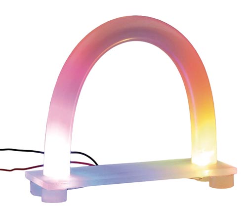 Egy kis szívárvány mindenkit elvarázsol. A világító diódák lagújabb változata teszi lehetővé, hogy, saját szívárványát építse meg, mely a lassú színváltoztatás hatására a szívárvány színeit imitálja. A boltív két végén elhelyezkedő dióda fokozatosan változtatja a három alapszínt (piros, kék, zöld). A műanyagcsőben összekeverednek a két dióda színei, melyek részben erősítik részben gyengítik egymást. Így sikerül egy színes fényjátékot előidézniük. Összeépítése nagyon egyszerű. 110 x 35 x 85 mm, 4,5 v-os elem nélkül