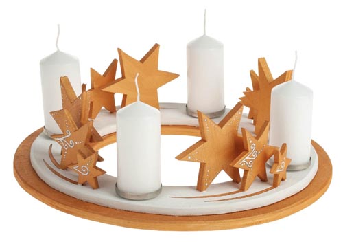 Hangulatos koszorú préselt fából, 4 db alumínium gyertyatüskével kb.ø 40 x 5 mm. Fúró és fűrészmukákhoz ideális gyakorló csomag. Szükséges munkafolyamtok: fúrás, fűrészelés, csiszolás, enyvezés, festés és összeillesztés. Leírás német nyelven.