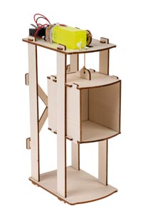 Egy hajtómotoros teherlift részletes modellje. A precíz lézertechnológiával vágott rétegelt lemezrészek tökéletes illeszkedést garantálnak és könnyen kivághatók. Nincs szükség átdolgozásra. A kapcsolókkal és kábelbilincsekkel felszerelt előreforrasztott áramköri lap, lehetővé teszi az elektronikus alkatrészek egyszerű összeszerelését. A csomagban található csavarhúzó és ragasztóbetétek. Nincs szükség további szerszámokra. 2x 1,5 V (AAA) elem nem a csomag tartozéka. Szükséges munkafolyamat: összeszerelés. Méretek: kb. 80 x 125 x 230 mm, 1 db