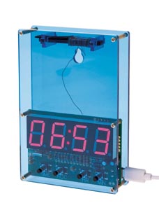 Sikeres beállítás után ez a rádióvezérlésű óra a beépített DCF modulnak köszönhetően magától beállítja magát, és 4 nagy, 7 szegmenses kijelzőn mutatja a pontos időt. A kék akrilüveg kiváló minőségű megjelenést kölcsönöz ennek a készletnek. Tartalék elemtartó CR2023 elemekhez. Manuálisan is állítható. Tápellátás szabványos mobiltelefon-töltőállomáson keresztül USB-A-val. Szükséges munka: forrasztás és szerelés.