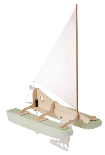 A Motus vitorlás egyértelműen és játékosan demonstrálja a vízen való mozgást szélenergia felhasználásával. Az előregyártott, lézerrel vágott faalkatrészek segítségével az összeszerelést kezelhető időn belül el lehet végezni. A távirányítós vezetési élményhez az RC vitorlás üzemmódú meghajtókészlet (cikk 126319) szükséges. Szükséges munkák: jelölés, ragasztás, összeszerelés, forrasztás. Méretek: kb 360 x 200 x 550 mm.