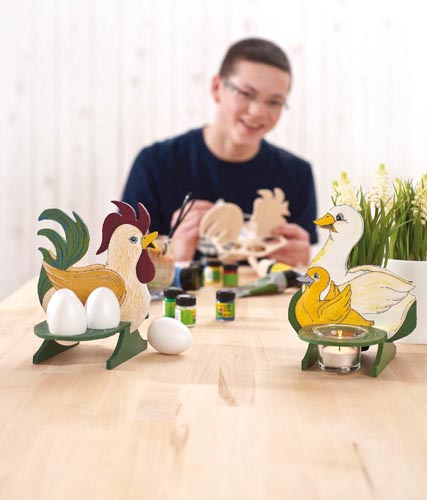 A tojástartó vidám hangulatot varázsol az asztalra és egy ötletes ajándék az anyukáknak. A leírás és a papírsablonok segítségével (1:1 arányban) könnyen felrajzolhatjuk a körvonalakat a furnérlemezre. A felrajzolt mintákat egy lombfűrésszel tudjuk kivágni, majd befesteni. 180 x 145 x 155 mm