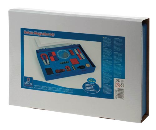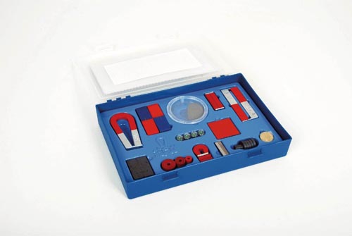 Tartozékok: mágnestábla, patkómágnes és gombmágnes, kerek és négyzet alakú Alcomax mágnesrudak, ferrit mágnes tömbök ésd gyűrűk, acél-patkómágnes, vaspor műanyag dobozban, egy két műanyagbevonatos vasmágnes, színes mágneses négyzetalakú gumilap. chromacél rúdak és fém korongok.Leírás német nyelven.