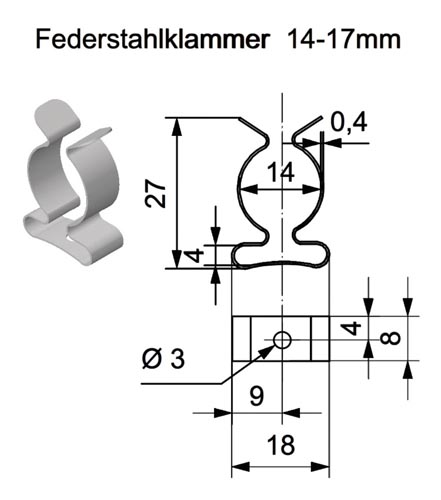Acélrugó kapocs, Ø14 - 17 mm