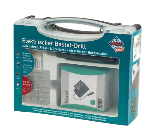 Fúrni vagy gravírozni - a szerszám kiválóan alkalmas kisebb hobby barkácsmunkákhoz. Alkalmas fa, üveg, műanyag, stb anyagok kidolgozásához. Tartozékok: 1 db kis fúrógép 45 W, üres fordulatszám 3000 - 12000 fordulat/perc, 1 db hálózati állomás 230 V, 4 db betétfej, 10 db cserélhető fúró és gravírozó szerszámhegy, tömeg csomagolással és trafóval kb. 763 g.