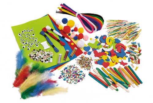 Tartozékok: 4 db filclap, 3 szoróglitter, 3 himzőfonal, 40 db kicsi műanyag gyöngy, 1 x átlátszó műanyag zsineg, 200 db ékszerkavics, 200 db flitter, 20 db toll, 30 db mini facsipesz, 200 db fapálcika, 30 db faspatula, 100 db rezgőszem, 20 db pompon, 150 db dekorgumi formák, 10 db zsenília.