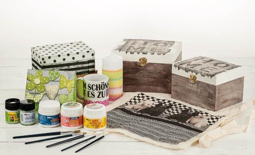 Terrekotta, fa, papír, karton, üveg, kerámia, müanyag, kö, alumínium, feszített vászonkeret felüületekre alkalmazható, vízes bázisú, száradás után időjárás és vízálló felületet képez.