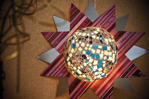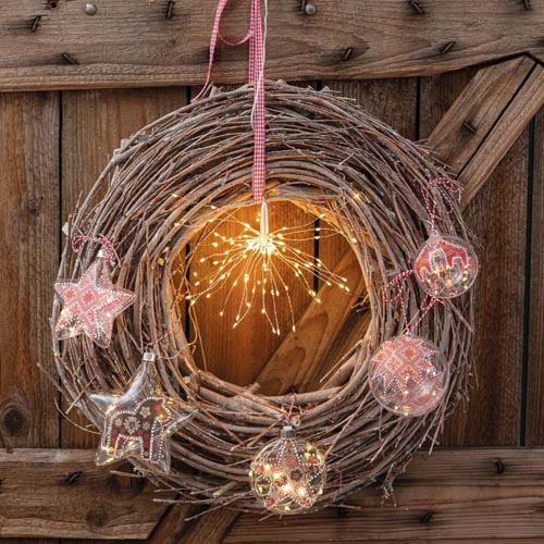 Két összeilleszthető részből álló, átlátszó acryl gömb, akasztóval. 15 mm lyukkal égősor izzóknak.
