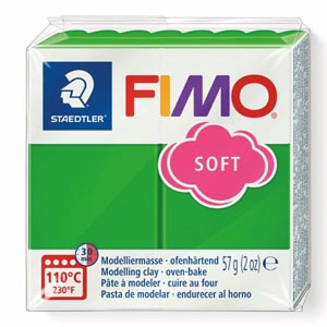 FIMO új lágy minőségben: FIMO SOFT. Könnyen gyúrható és így gyorsan alkalmazható modellezéshez. Az elkészített modelleket a sütőben kell 110 °C-on, 30 percig készre sütni. A gyurmablokk mérete: 55 x 55 x 15 mm. .